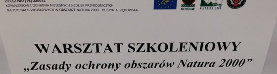 28.10.2015 odbyły się drugie z pięciu warsztatów szkoleniowych przeznaczonych dla przedstawicieli instytucji wojskowych oraz osób zarządzającymi terenami wojska, które mają szczególne znaczenie przyrodnicze w projekcie LIFE12 NAT/PL/000031 pn. „Kompleksowa ochrona nieleśnych siedlisk przyrodniczych na terenach wojskowych w obszarze Natura 2000” – Pustynia Błędowska finansowanym w ramach instrumentu finansowego LIFE+ ze środków Unii Europejskiej i Narodowego ...