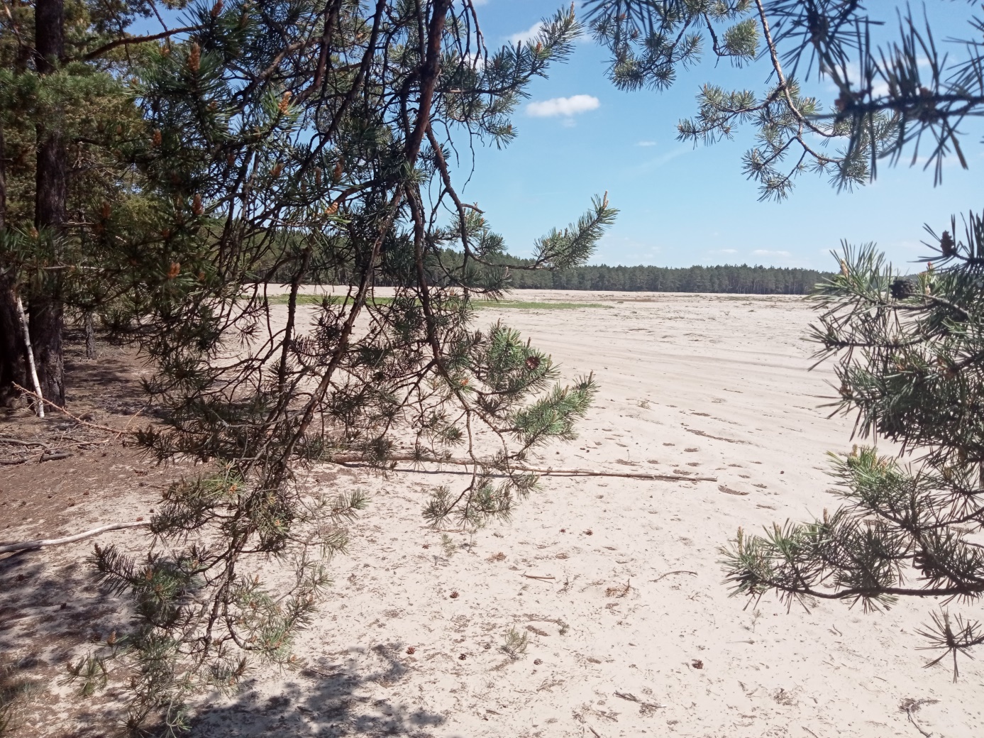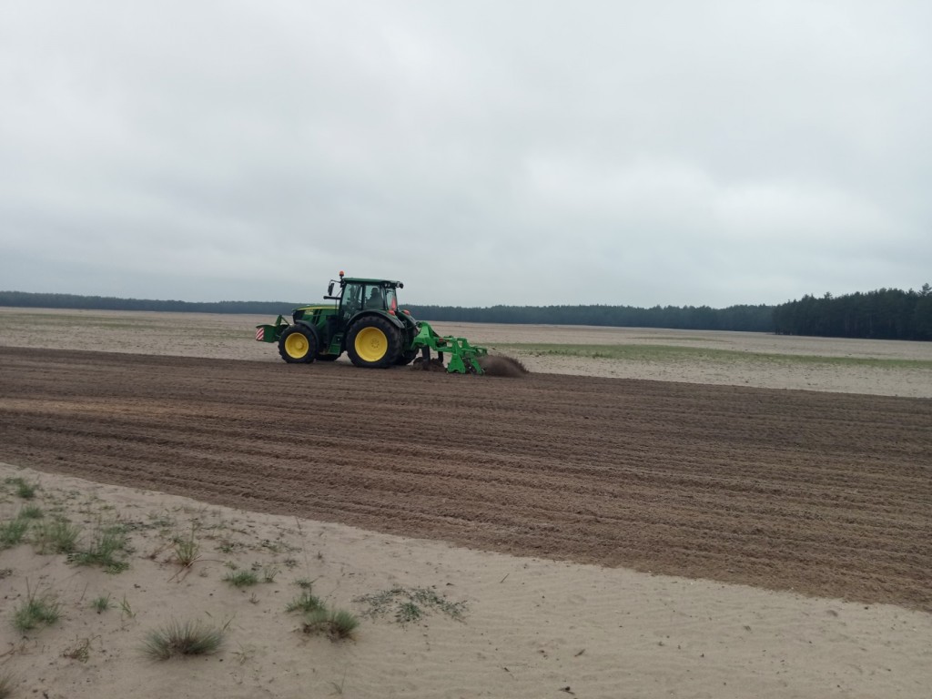 Od dnia 08.05.2023 r. na terenie Pustyni Błędowskiej trwają prace czyszczenia gleby bielicowej na obszarze pól deflacyjnych, za pomocą sprzętu zakupionego w ramach projektu. Są to działania bardzo istotne, gdyż wpływają na zachowanie procesów eolicznych kształtujących cenne siedliska napiaskowe. Pola deflacyjne otaczające przedmiotowe siedliska przyrodnicze, stanowią dla nich tzw. strefę buforową, na której w sposób swobodny mogą zachodzić procesy eoliczne, a przemieszczany z niej piasek będzie powstrzymywał sukcesję na płatach chronionych siedlisk. Ponadto, stanowią one źródło materiału budującego podłoże.
