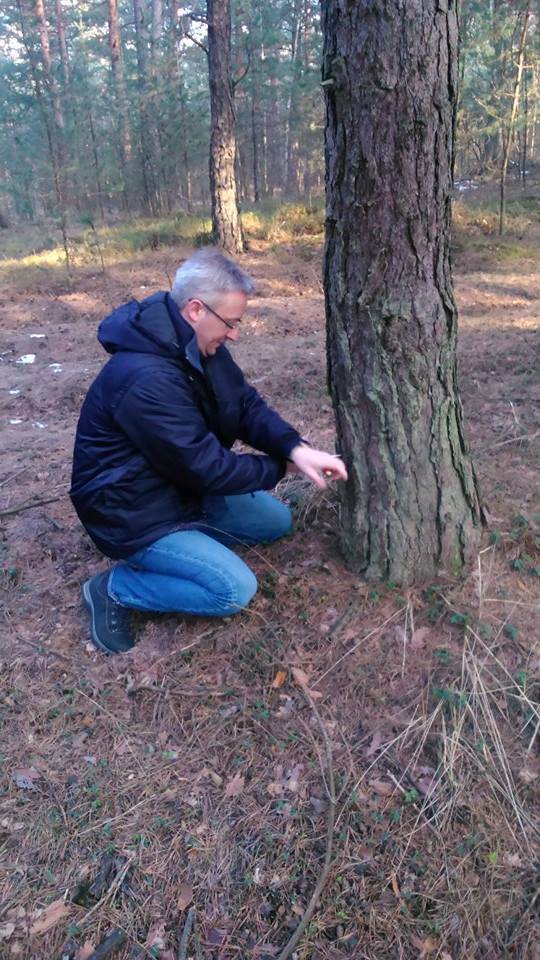 W dniu 17.03.2016r. na terenie Pustyni Błędowskiej dr inż. Hubert Lachowicz oraz pan Jarosław Kikulski z SGGW Warszawa – Wydział Leśny Katedry Użytkowania Lasu odwiedzili teren Pustyni Błędowskiej w celu pobrania próbek drewna sosny do badań strukturalnych i fizyko-mechanicznych. Powierzchnie do badań zostały wyznaczone zarówno na terenie należącym do wojska, jak i na terenie Lasów Państwowych.